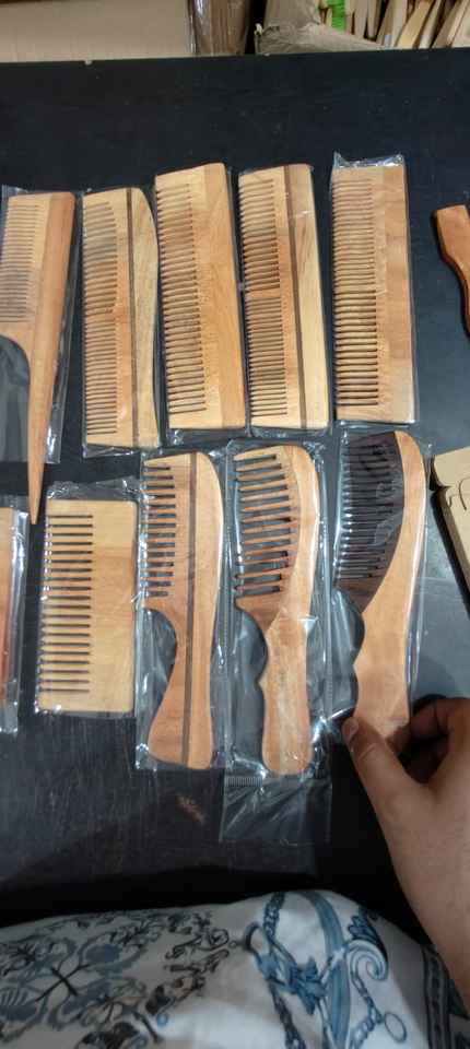 หวีไม้สะเดา บำรุงเส้นผม ป้องกันไฟฟ้าสถิต จัดแต่งทรงผมได้ทั้งผมเปียกและผมแห้ง สำหรับผมหยิก ผมหนา ผมลอน ใช้ได้ทั้งที่บ้านและร้านเสริมสวย บรรจุกล่อง ขัดเงา IBS