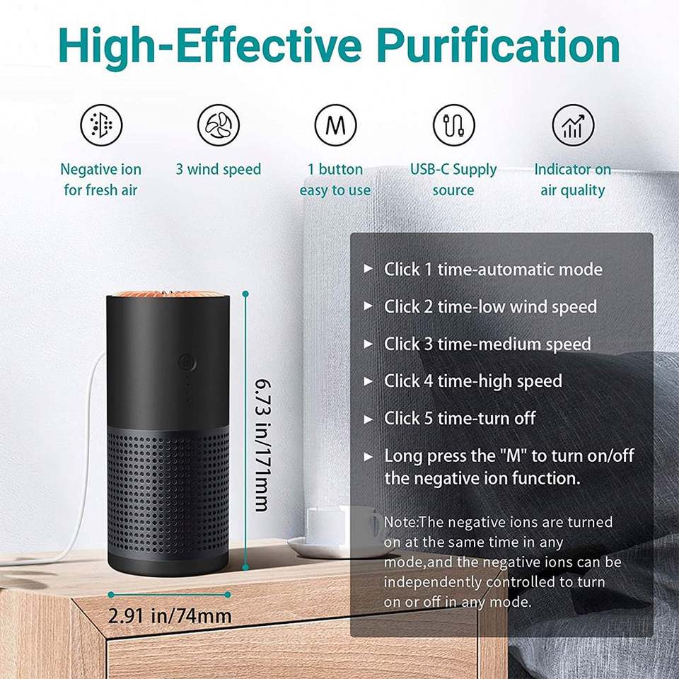 เครื่องฟอกอากาศแบบ HEPA กรองไอออนไนซ์ประจุลบแบบคาร์บอนแบบพกพาสำหรับใช้ในรถยนต์