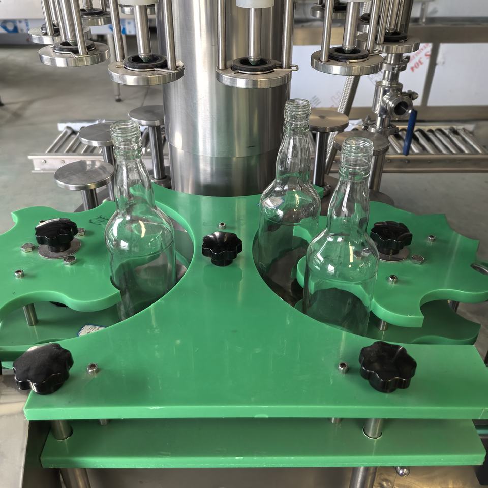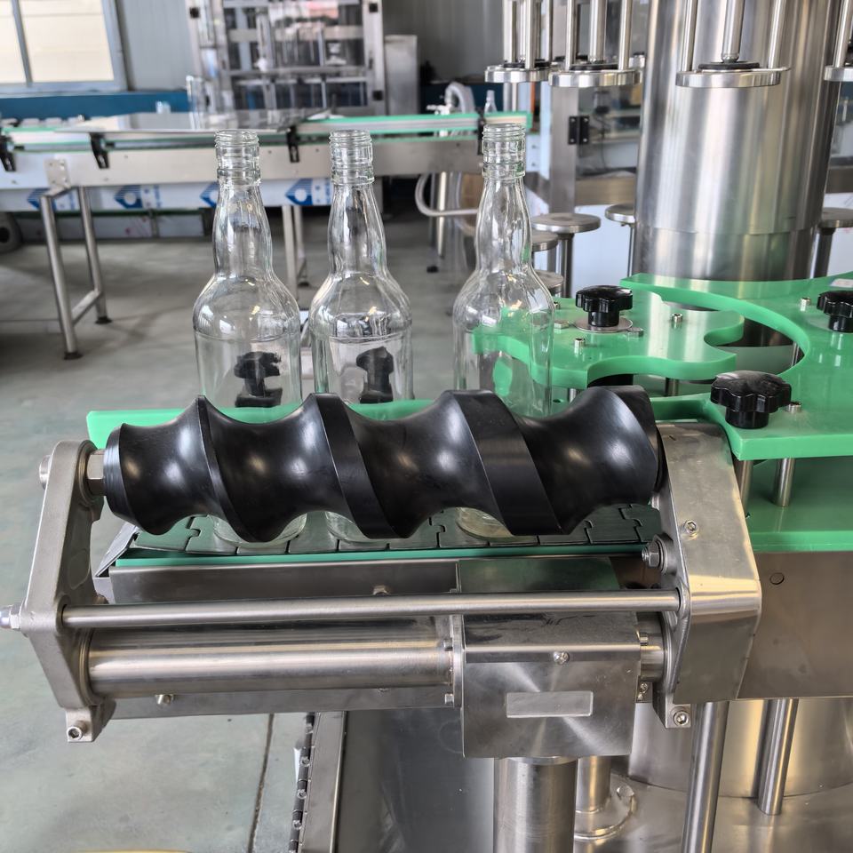 เครื่องบรรจุของเหลวแบบสุญญากาศสำหรับขวดแก้ว น้ำ เครื่องดื่มแอลกอฮอล์ น้ำมันหอมระเหย ไวน์ น้ำส้มสายชู พร้อมสายพานลำเลียง