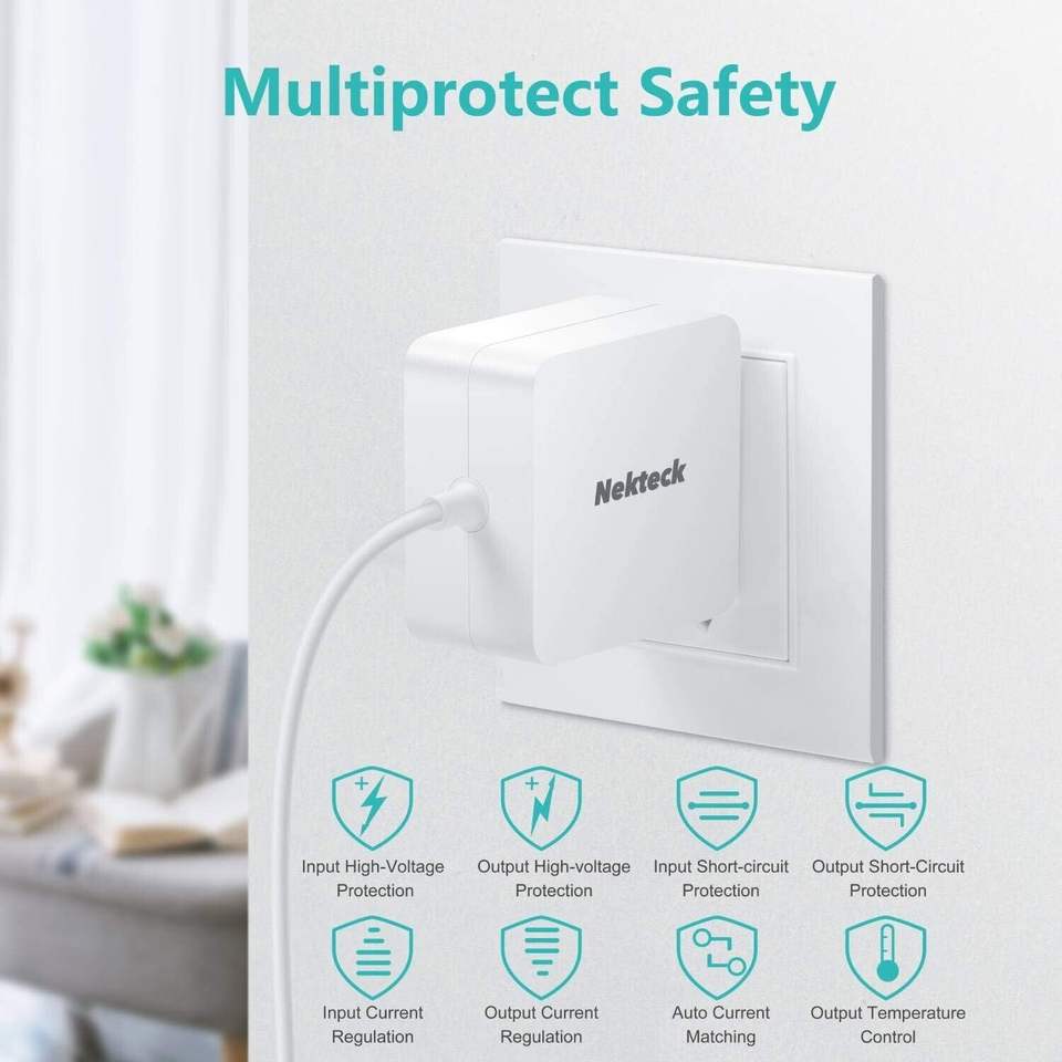 Nekteck 45W USB-C Charger with Attached 6ft Cable PD.3 Certified Laptop Power Supply [USB-IF Certified]