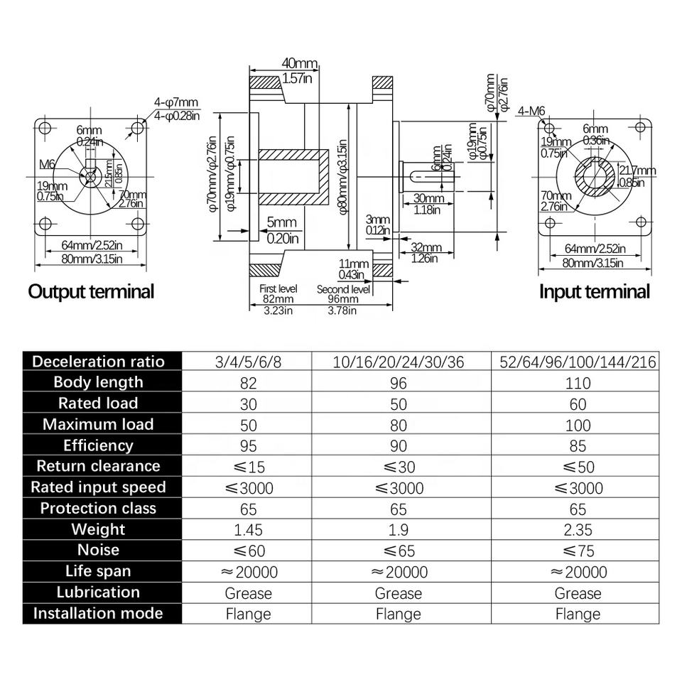 NEMA 32 Ratio 52 64 96 100 120 150 144 180 216 PX80ตัวลดดาวเคราะห์หน้าแปลน80สำหรับจับคู่กับเซอร์โวมอเตอร์80ST