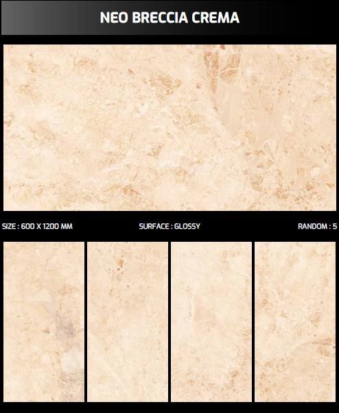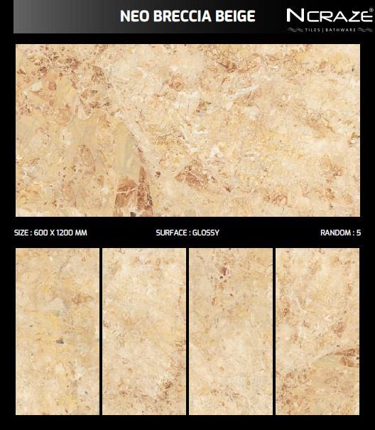 กระเบื้องปูพื้นเซรามิกพอร์ซเลน Neo Breccia Crema Design ขนาด 60x120 ซม. รุ่น Ncraze สำหรับบ้าน ผลิตจากโรงงานในอินเดีย
