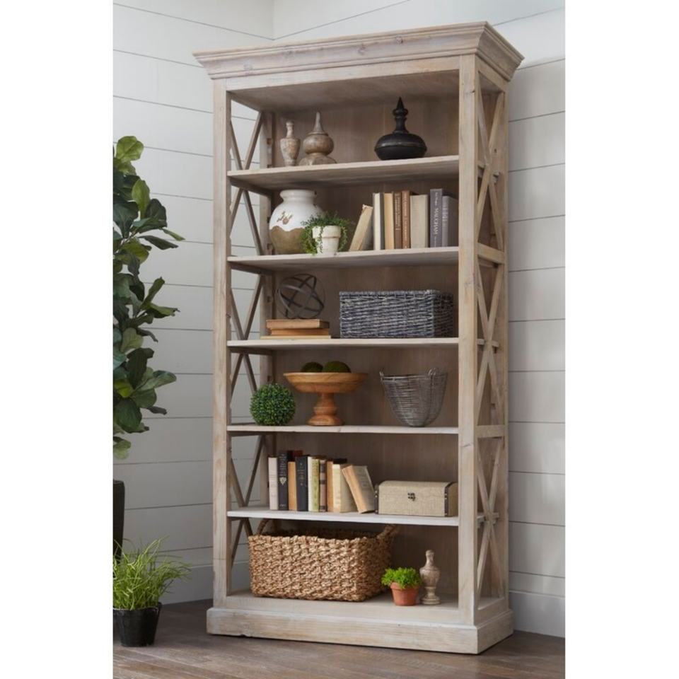 ตู้หนังสือแบบเปิดสำหรับห้องนั่งเล่น ดีไซน์สไตล์นีโอคลาสสิก พร้อมชั้นวางปรับได้ห้าระดับ