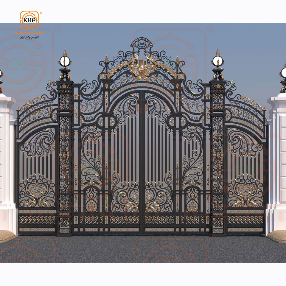 โครงการวิลล่าสไตล์ราชวงศ์แบบนีโอคลาสสิก ออกแบบตามสั่ง รั้วเหล็กดัด ประตูทางเข้าแบบโครงเหล็กชุบสังกะสีแบบจุ่มร้อน พร้อมแบบจำลอง 3 มิติ