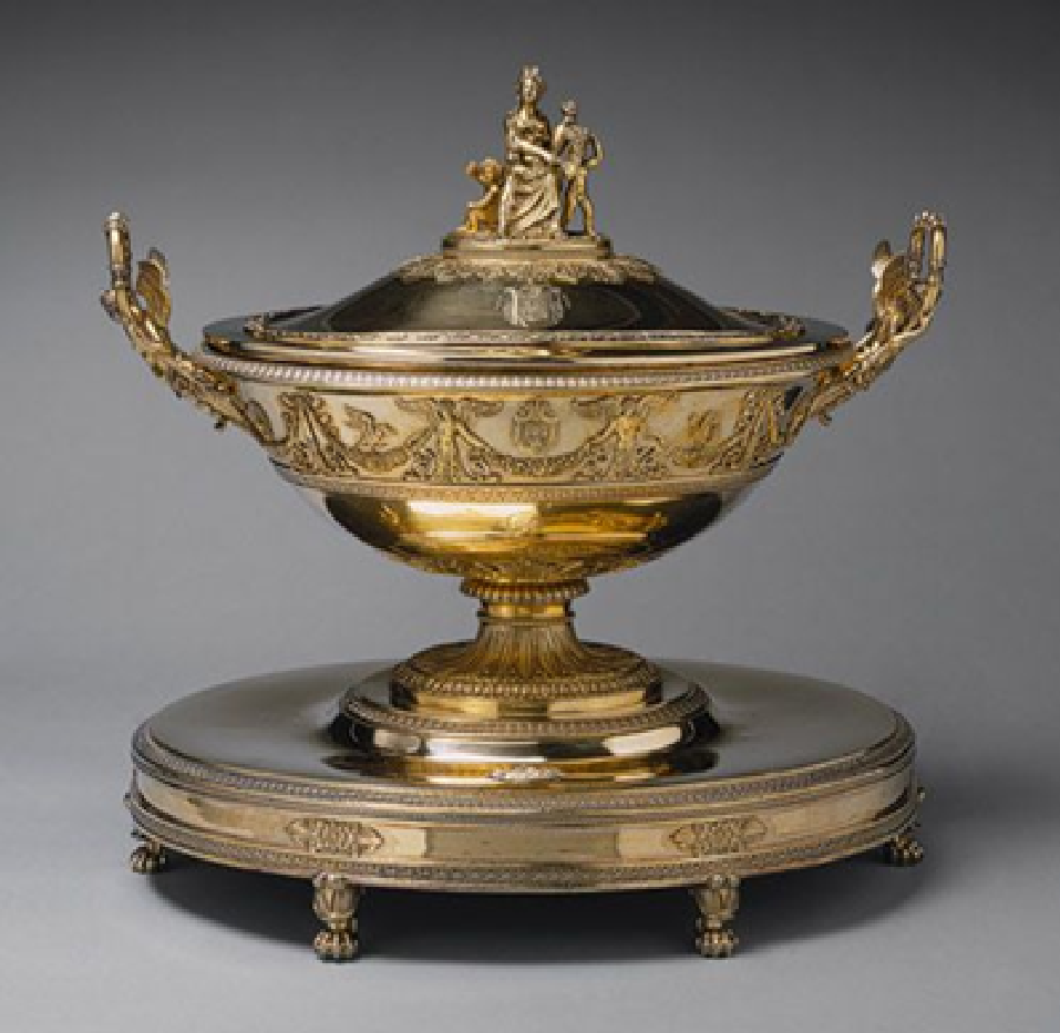 ชามซุปสไตล์นีโอคลาสสิกเคลือบทอง พร้อมหัวจุกตกแต่งรูปทรงสง่างามบนฐานกว้าง รับสินค้าได้ในราคาขายส่ง