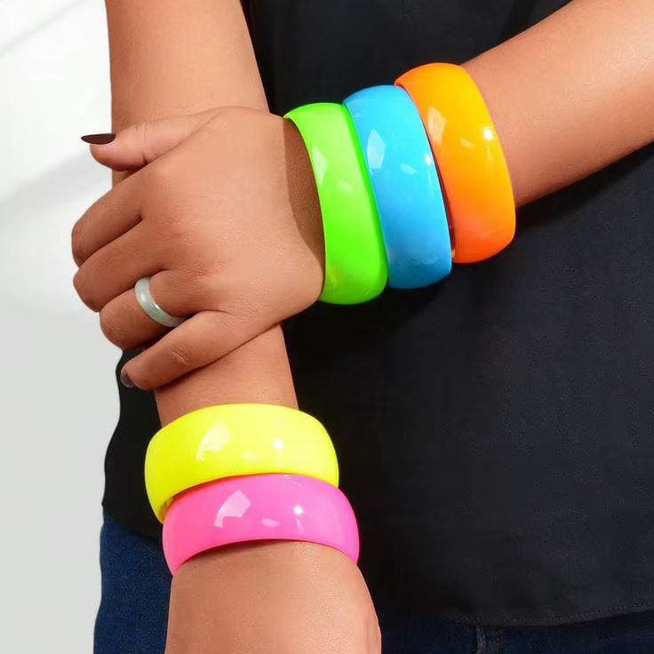 กำไลข้อมืออะคริลิคเรซิ่นสีนีออนสดใสสำหรับผู้หญิง เครื่องประดับแฟชั่น ของขวัญสำหรับงานปาร์ตี้ กำไลข้อมือแบบวงกลมเรียบๆ สำหรับสุภาพสตรี