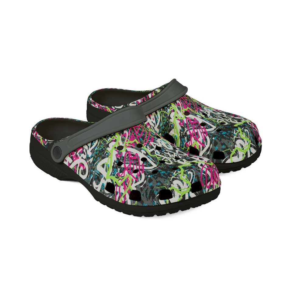 รองเท้าสลิปออนสีดำระบายอากาศได้ดี ลายกราฟฟิตีนีออน ทำจากโฟม EVA 100%