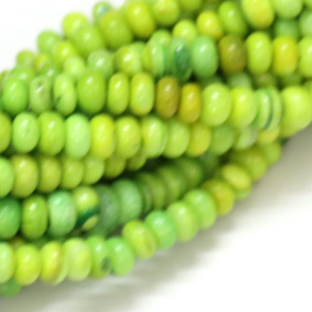 ลูกปัดโอปอลสีเขียวนีออน: ลูกปัดทรงรอนเดลล์เกรด AAA, ความยาว 15 นิ้ว