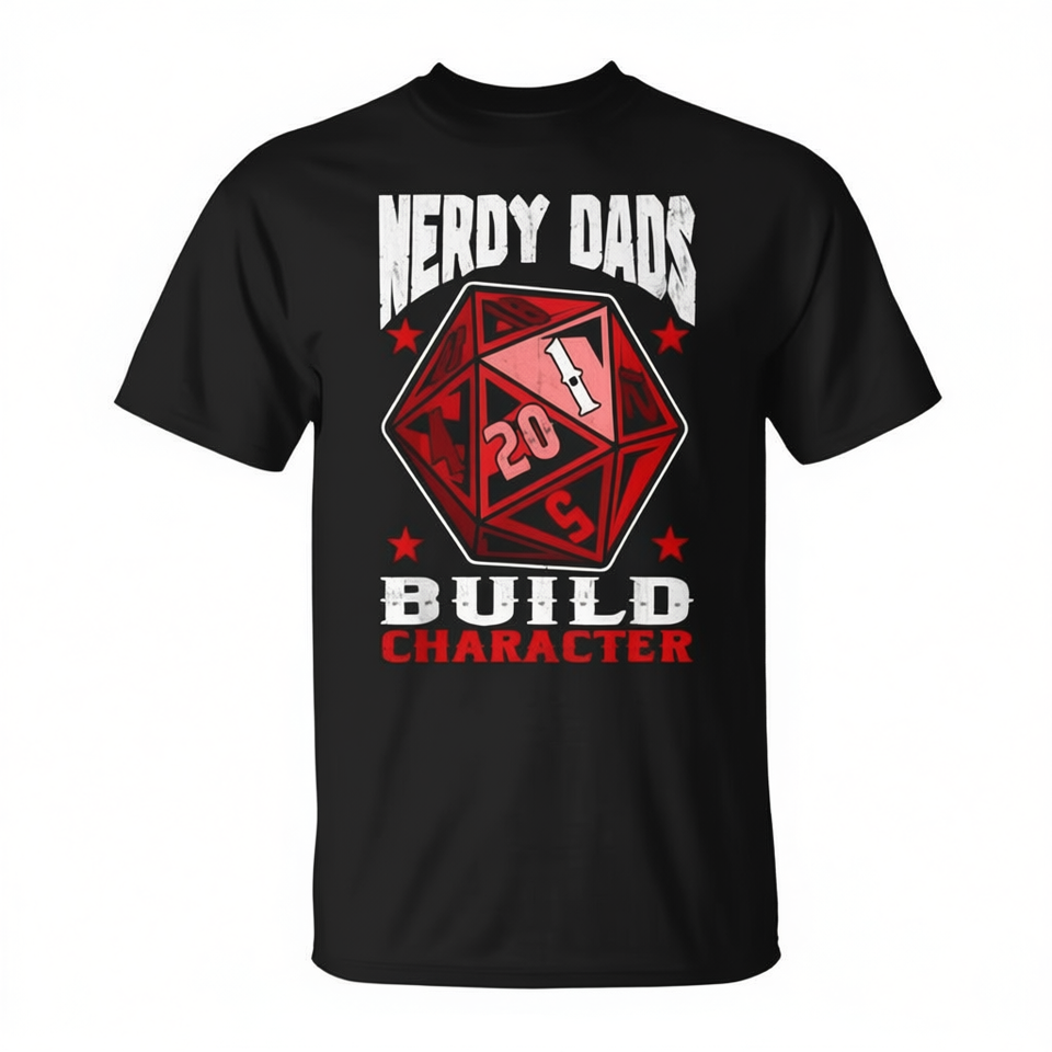 เสื้อยืดเนอร์ดี้แดดส์ บิลด์ คาแรคเตอร์ ดี 20 สำหรับเกมเมอร์ ของขวัญวันพ่อ