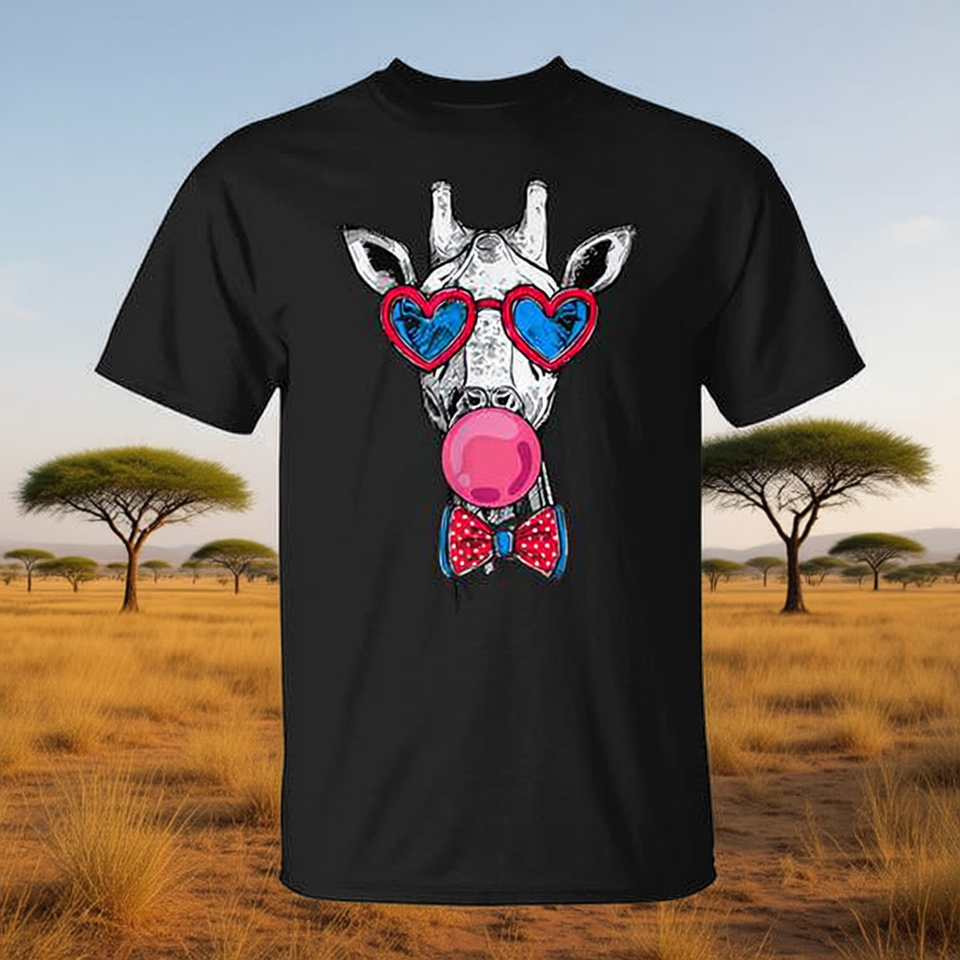 Nerdy Giraffe T-Shirt With Heart Sunglasses And Bow Tie For Animal Lover Wildlife Gift