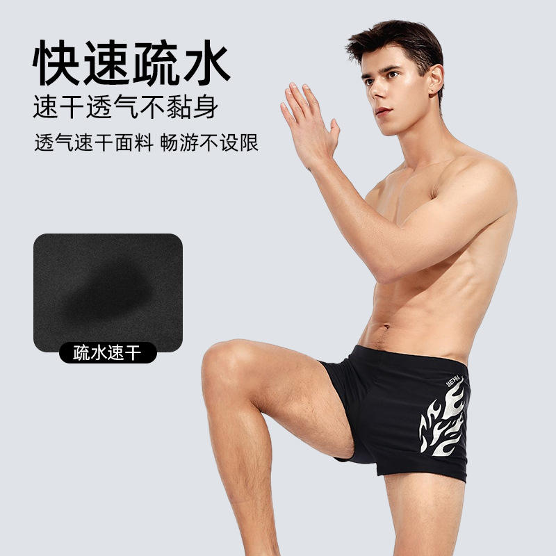 กางเกงว่ายน้ำผู้ชายเนรุ แห้งเร็ว เอวกลาง ทรงสปอร์ต ลายเปลวไฟ สีเงิน น้ำเงิน แดง สำหรับผู้ใหญ่ ผ้าโพลีเอสเตอร์ทอ