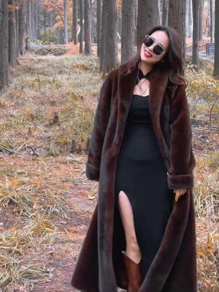 เสื้อโค้ทยาวหรูหราสำหรับผู้หญิง Nesta Sports รุ่น Winter High-End ดีไซน์ปกเสื้อแบบใหม่ สไตล์ลำลอง ขนเฟอร์มิงค์เทียม ซับในโพลีเอสเตอร์