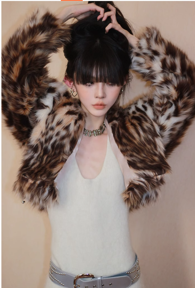 เสื้อแจ็คเก็ตขนเฟอร์เทียมแบบครอปสำหรับผู้หญิง ลายเสือดาว/เสือชีตาห์ แขนยาว กันลม ไซส์ใหญ่ ยี่ห้อเนสต้า สปอร์ตส์ รุ่นวินเทอร์ ฮอตเกิร์ล