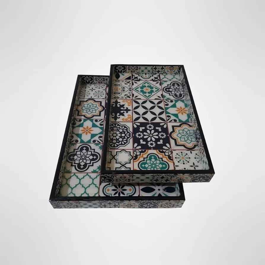 ชุดถาดเสิร์ฟขนาดใหญ่แบบซ้อนกัน ถาดไม้ MDF ลายเคลือบตกแต่ง รูปทรงสี่เหลี่ยมผืนผ้า สไตล์อเมริกัน สำหรับจัดเลี้ยงอาหารเช้า