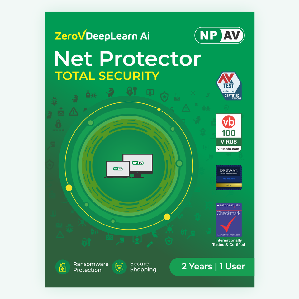 ซอฟต์แวร์ป้องกันไวรัส Net Protector Antivirus Total Security ระบบป้องกันดิจิทัลทรงพลังสำหรับคอมพิวเตอร์และแล็ปท็อป 1 ผู้ใช้ แพ็คเกจ 2 ปี