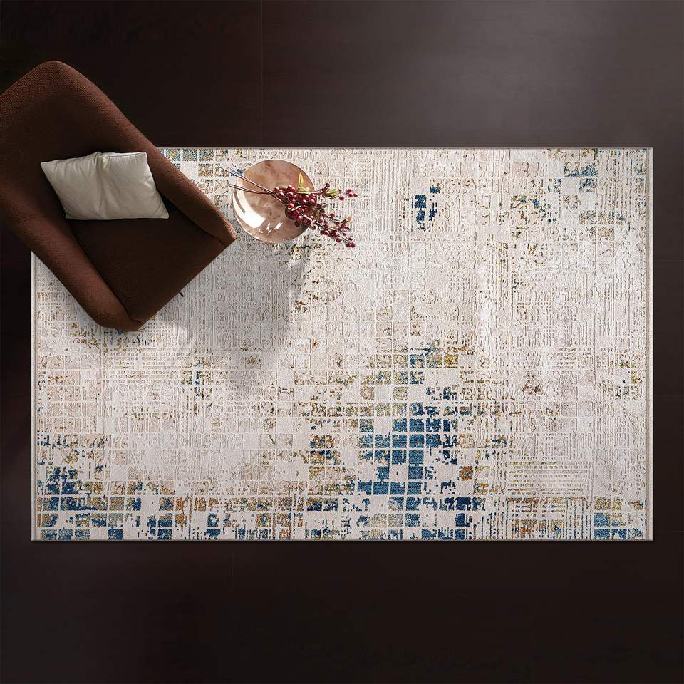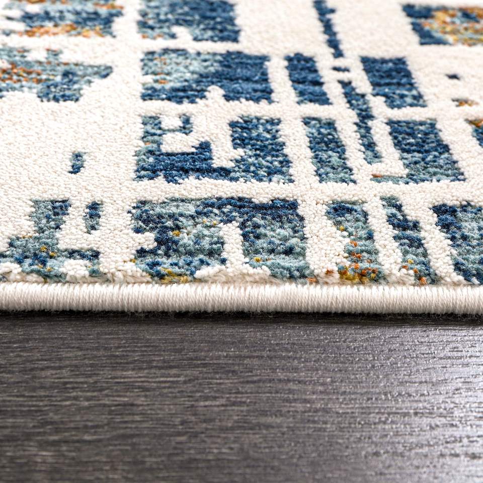 พรมปูพื้นเน็ตไลน์ โฮม โบฮีเมียน คอนเทมโพรารี สีเบจ-น้ำเงิน ขนสั้น ขนาด 120x180 ซม. สำหรับห้องนั่งเล่น ห้องนอน ห้องครัว ทางเดิน