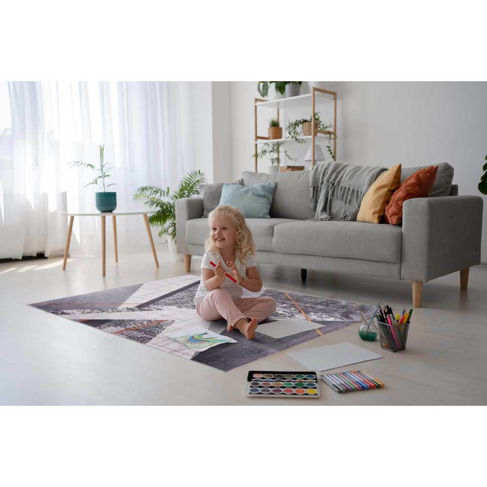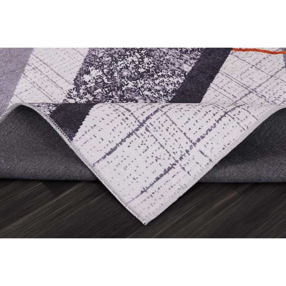 พรมลายทางสีเทาโบฮีเมียนของเน็ตไลน์ โฮม ดีโปที่สามารถซักได้ รุ่น NL1005 ผลิตภัณฑ์เครื่องจักรสิ่งทอสำหรับตกแต่งบ้าน