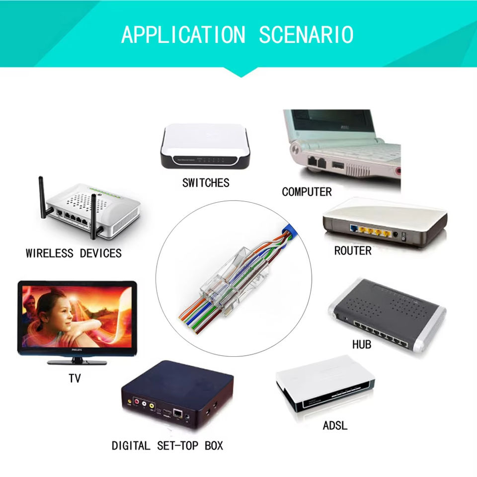 หัวต่อสายแลน RJ45 แบบคริสตัล 6U สำหรับสาย Cat5 Cat5e Cat6 อีเธอร์เน็ต แลน วัสดุทองแดงและพลาสติก