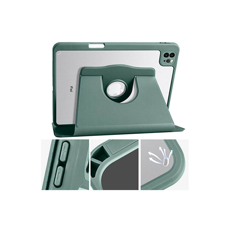 เคส Netzy 2025 M3 สำหรับ iPad Air 11 สีเขียวเข้ม เคสป้องกันพร้อมช่องใส่ปากกาแบบใช้ความร้อน ขาตั้งหมุนได้ ใช้ได้กับ Kindle Pro