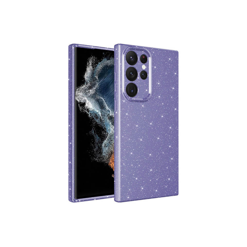 NETzy เคสกลิตเตอร์ XR หรูหราป้องกันลายนิ้วมือกล้องผ้าฝ้ายชุบสีม่วงสำหรับ Samsung สำหรับ Galaxy S22 Ultra