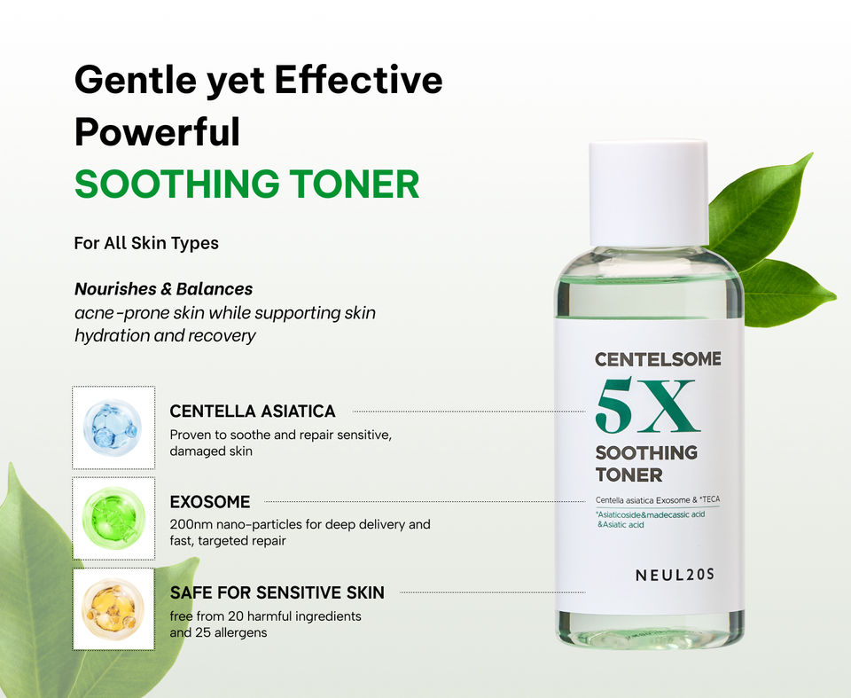Neul20s Centelsome 5X Soothing Toner 200ml Hyaluronic Acid Facial Toner Korean Skincare Hydrating Toner Liquid Form