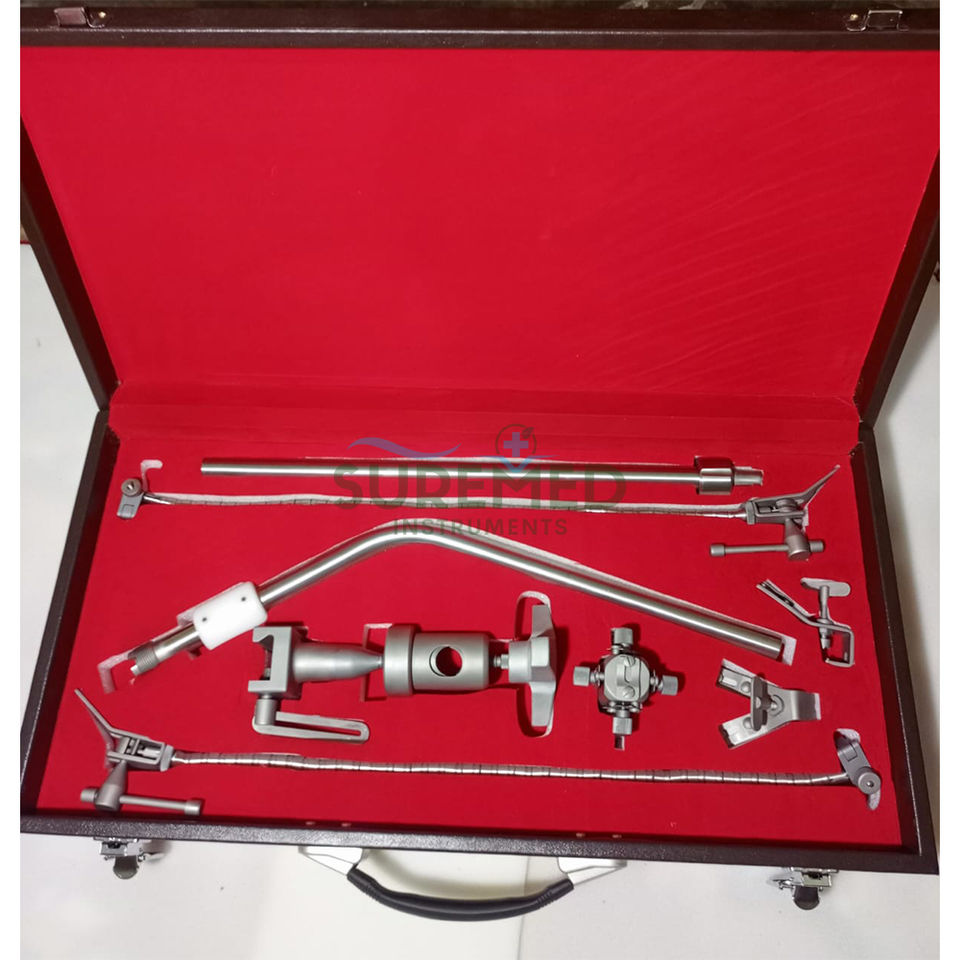 ชุดเครื่องมือผ่าตัดระบบประสาท Leyla พร้อมเครื่องมือถ่างสมองแบบยึดติดด้วยตนเองทำจากสแตนเลสสตีลและแขนที่ยืดหยุ่นได้
