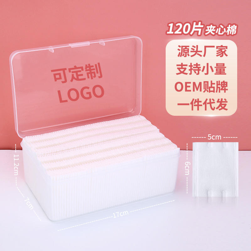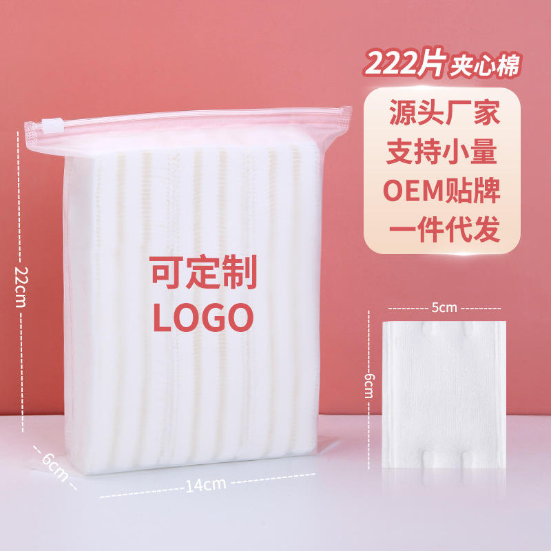 แผ่นสำลีแบรนด์กลางๆ 150 ชิ้น แบบสามชั้น ไม่ถักทอ สำหรับเช็ดเครื่องสำอาง พร้อมบริการสกรีนโลโก้ สำหรับใช้งานทั่วไป