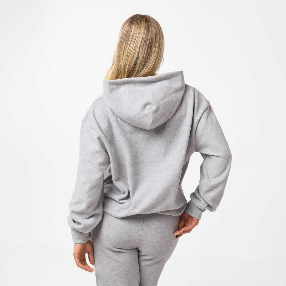 เสื้อสเวตเชิ้ตผ้าฝ้ายเนื้อหนาสีเทาแบบกลางๆ สไตล์สตรีทแวร์ พร้อมกางเกงขายาวทรงจ็อกเกอร์ แบบไหล่ตก รับสกรีนโลโก้ตามสั่ง (OEM)