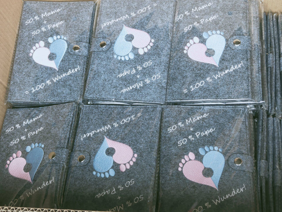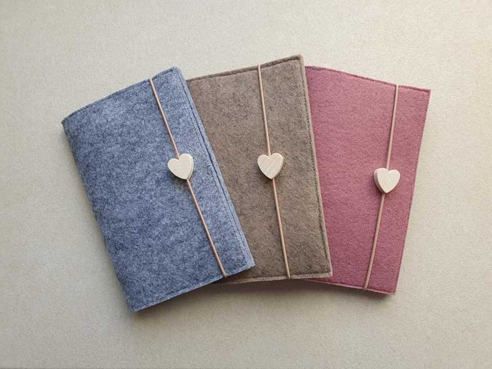 ปกสมุดบันทึกการตั้งครรภ์สีเทาอ่อนแบบเรียบ ผลิตจากผ้าสักหลาดคุณภาพสูงจากออสเตรีย สำหรับใส่บัตรประกันการตรวจครรภ์