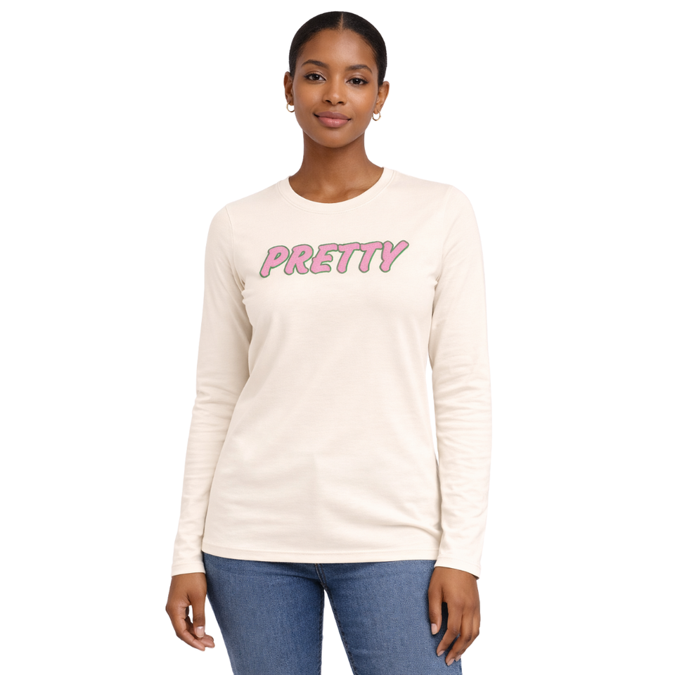 เสื้อยืดแขนยาวลายสวยสไตล์กรีกสำหรับผู้หญิง สีชมพูและสีเขียว เสื้อผ้าสำหรับนักศึกษาหญิง ชุดนักเรียนหญิงมีสไตล์แบบกรีก