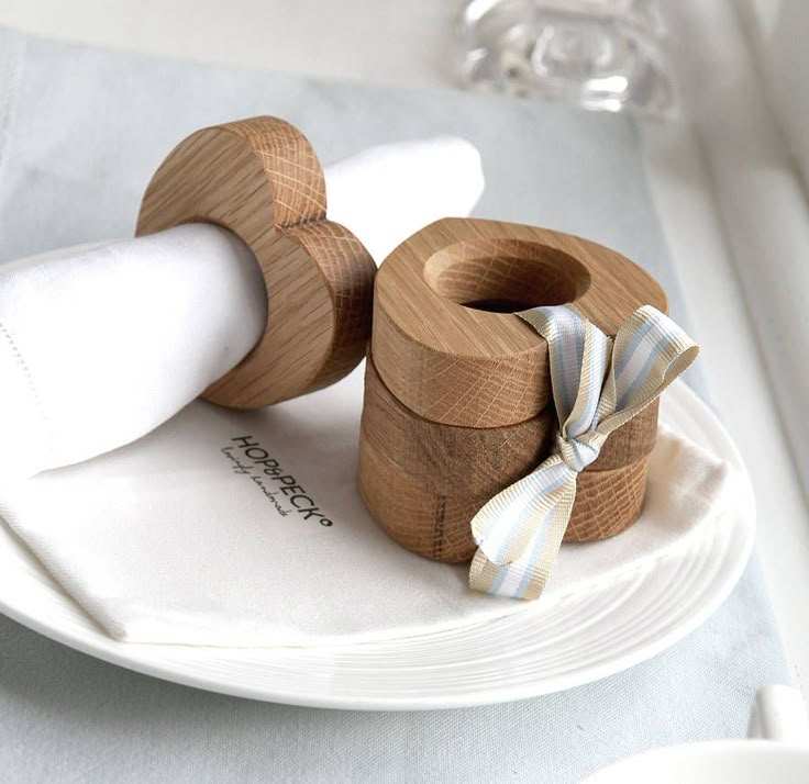 ห่วงรัดผ้าเช็ดปากทำจากไม้สีกลางสำหรับตกแต่งโต๊ะตามธีมธรรมชาติและเน้นงานฝีมือที่หรูหรา