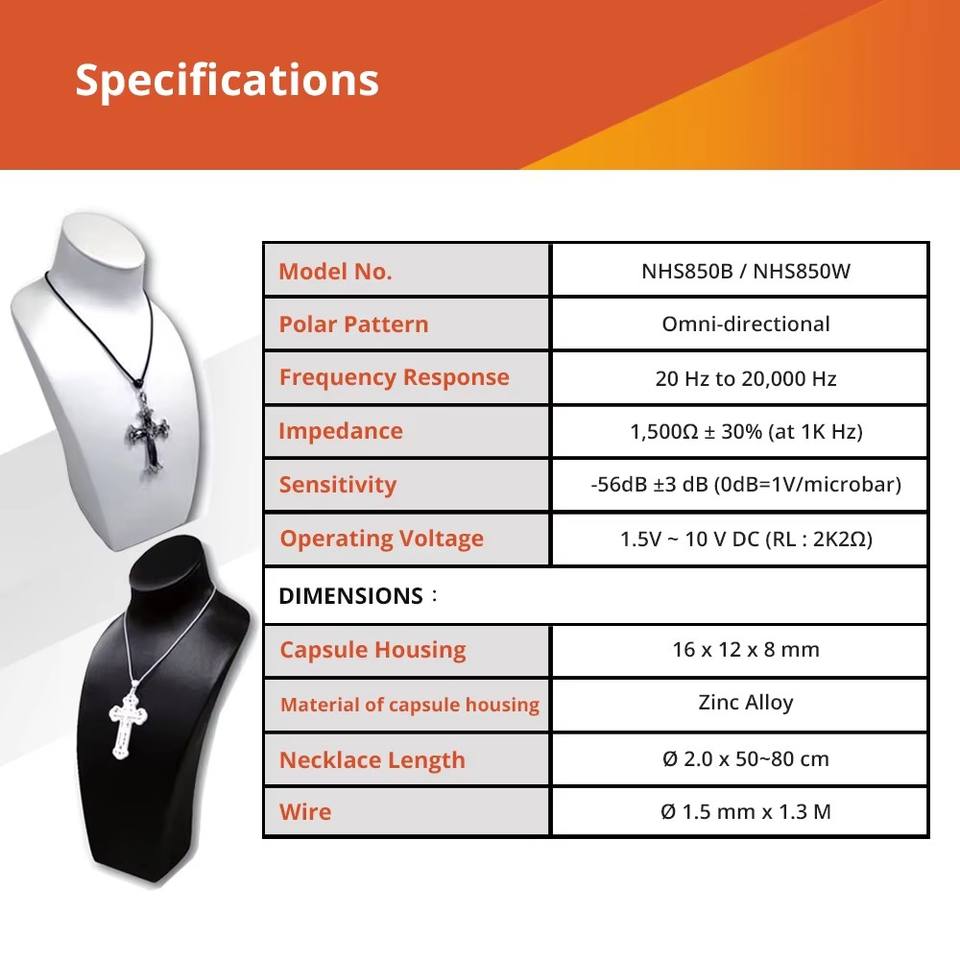นิวตรอน NHS850B/W ตัวเรือนโลหะผสมสังกะสีที่ทนทานแบบมีสายแบบพกพาไมโครโฟนแบบสวมใส่ได้ความไวสูง 1500 20Hz-20kHz ปลั๊กเสียง 3.5 มม.