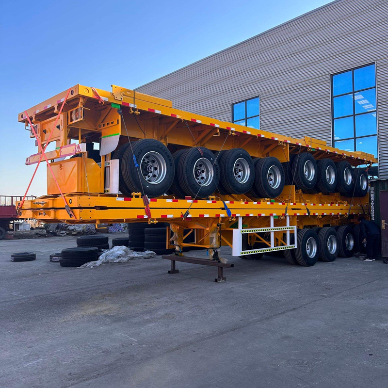 รถพ่วงพื้นเรียบใหม่ ขนาด 1-2 ตัน ยาว 12.5 เมตร 4 เพลา ผลิตที่ซานตง รถพ่วงอเนกประสงค์สำหรับขาย