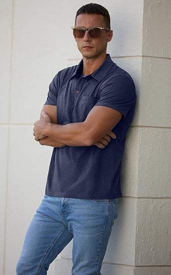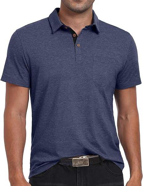 เสื้อโปโลผู้ชายผ้าฝ้ายแท้ 100% แบบใหม่ มีกระเป๋า โลโก้เรียบง่าย แขนสั้น สไตล์ลำลอง