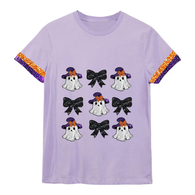 เสื้อยืดคอกลมคอตตอน100% ใหม่ออกแบบได้เองพร้อมลายผีน่ารักๆฮาโลวีนเสื้อยืดระบายอากาศทำมือ