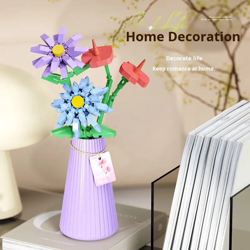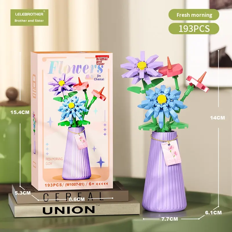 New 1007 Plastic Building Blocks Set Includes Vase Sunflower Rose & Eternal Flower Vase Assembly Toy for Girls & Boys