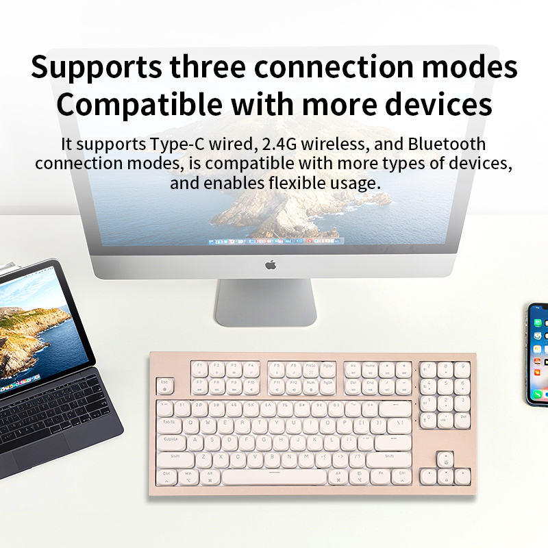 คีย์บอร์ดไร้สายแบบกลไก 102 ปุ่ม รุ่นใหม่ รองรับการเชื่อมต่อแบบ Hot Plug ดีไซน์ตามหลักสรีรศาสตร์ ความถี่ 2.4 GHz เชื่อมต่อได้สามโหมดผ่าน USB-C พร้อมไฟ LED Backlit สำหรับ iPad