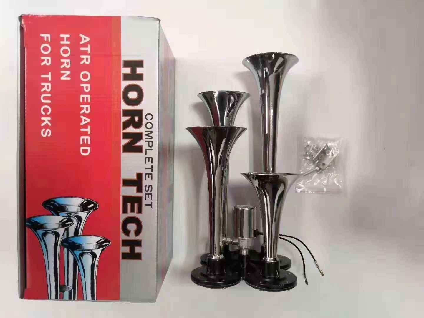 แตรลมโครเมียม 12/24 โวลต์ 135 เดซิเบล เสียงดังพิเศษ ไม่เป็นสนิม แบบสามลำโพง สำหรับเรือ รถบัส รถบรรทุก รถจักร รถไฟ รถจักรยานยนต์ รถยนต์
