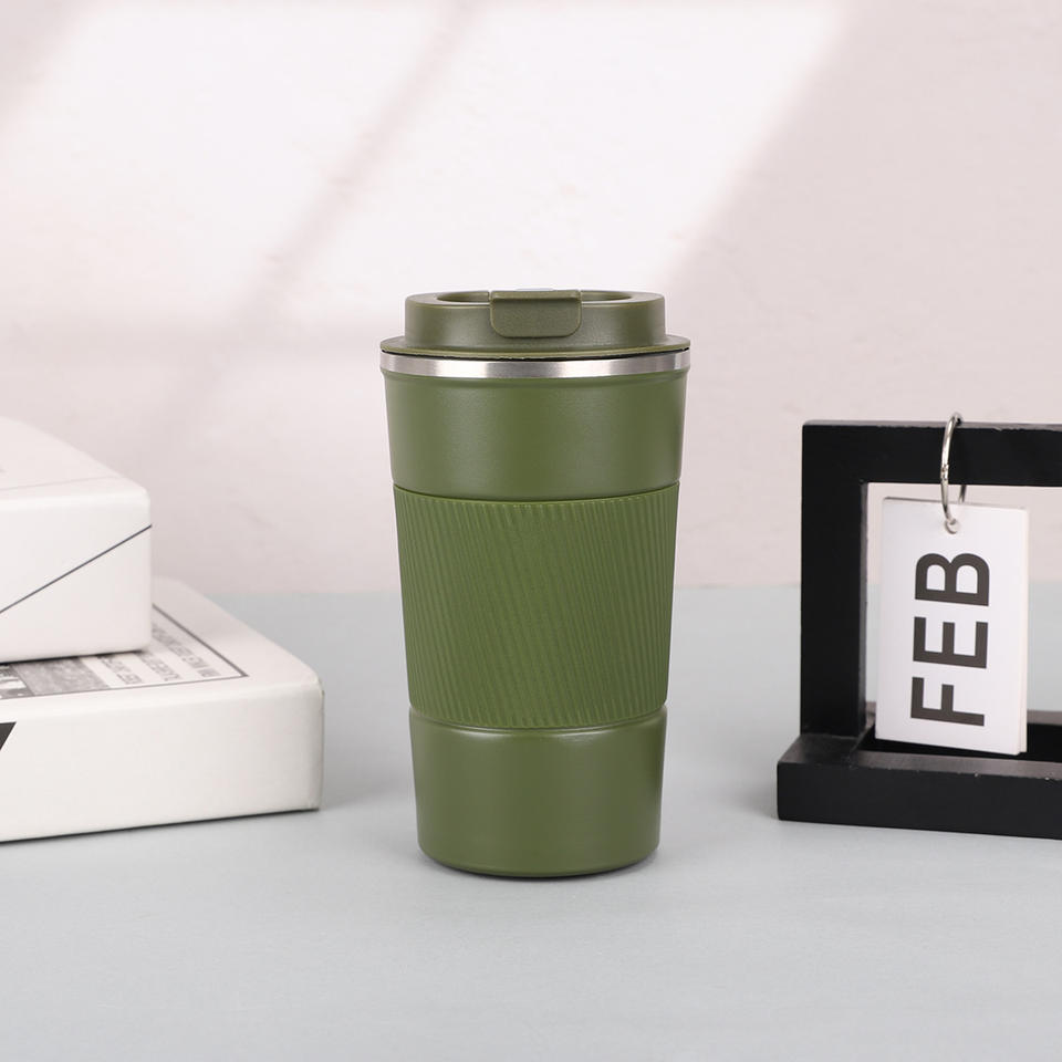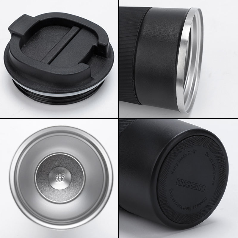 แก้วกาแฟแบบพกพา สแตนเลสสตีล ดีไซน์สำหรับกิจกรรมกลางแจ้ง ขนาด 12 ออนซ์/17 ออนซ์ พร้อมฝาปิด 2-in-1