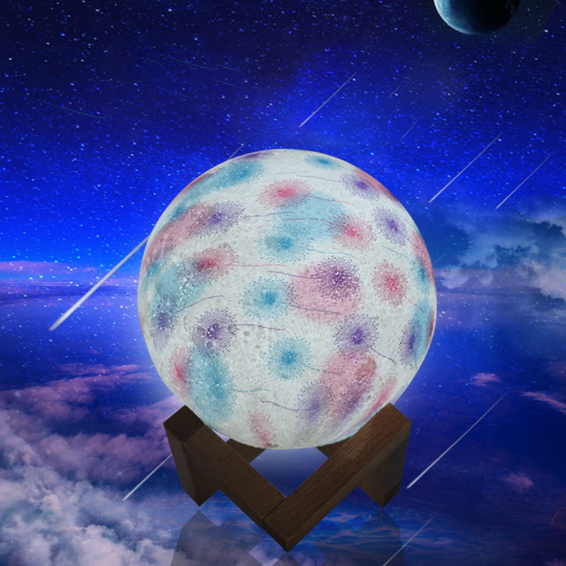 โคมไฟ LED พระจันทร์และเสี้ยว16สีแบบตั้งโต๊ะ RGB โคมไฟอะคริลิคบอล & ฐาน ABS และที่ชาร์จ USB