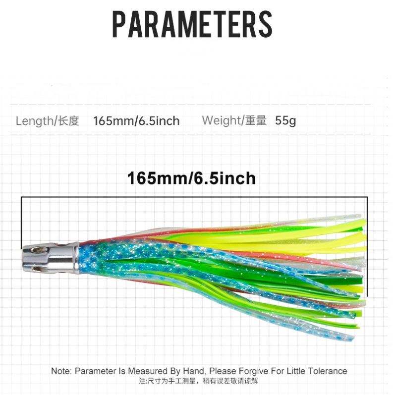 เหยื่อตกปลาทะเลน้ำลึกแบบใหม่ ขนาด 165 มม. น้ำหนัก 55 กรัม สำหรับตกปลาใหญ่ แบบพ่นน้ำ รูปปลาหมึก สำหรับตกปลาทูน่า มาร์ลิน เหยื่อปลอมแบบนิ่ม