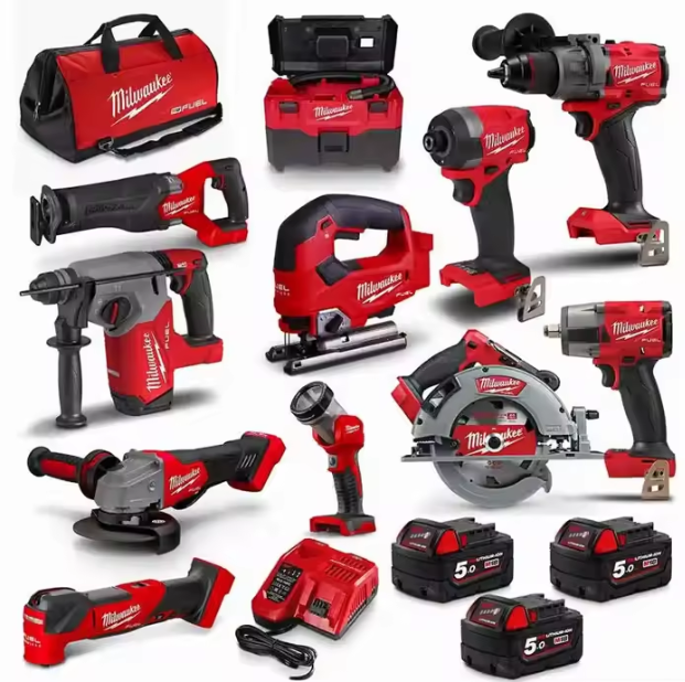 ชุดเครื่องมือไฟฟ้าไร้สายแบตเตอรี่ลิเธียมไอออน 18V ใหม่ พร้อมเครื่องเจียร ประแจกระแทก สว่าน ไขควง คุณภาพสูง ชุดเครื่องมือ 8-in-1 ใหม่