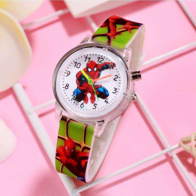 นาฬิกาข้อมือเด็กผู้ชายลายการ์ตูนซูเปอร์ฮีโร่สไปเดอร์แมนจากมาร์เวล รุ่นใหม่ ปี 2021 วัสดุซิลิโคน พร้อมไฟกระพริบ