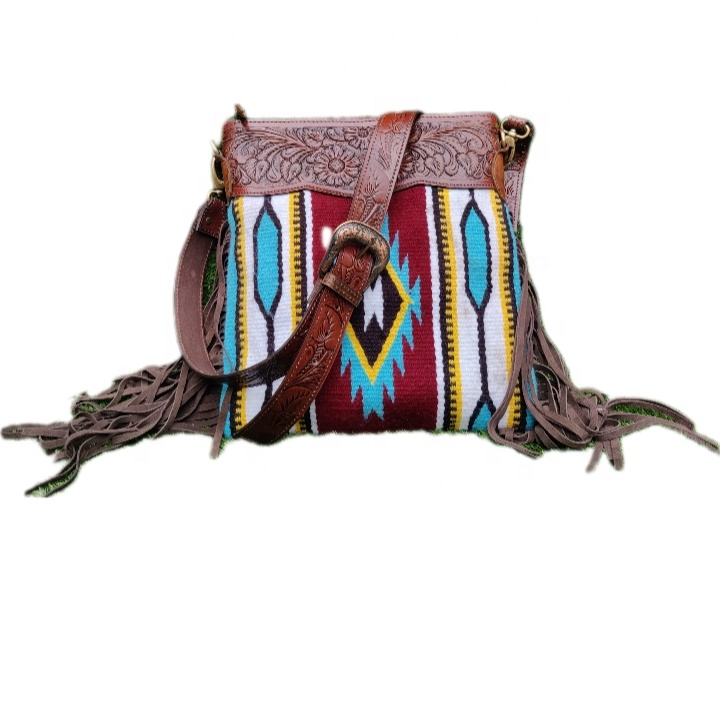 กระเป๋าถืออานผ้าห่มสไตล์ตะวันตก2023ใหม่ทำจากกระเป๋าสะพายข้างแอซเท็กแห้งแบบกลองสำหรับสาวโคบาล
