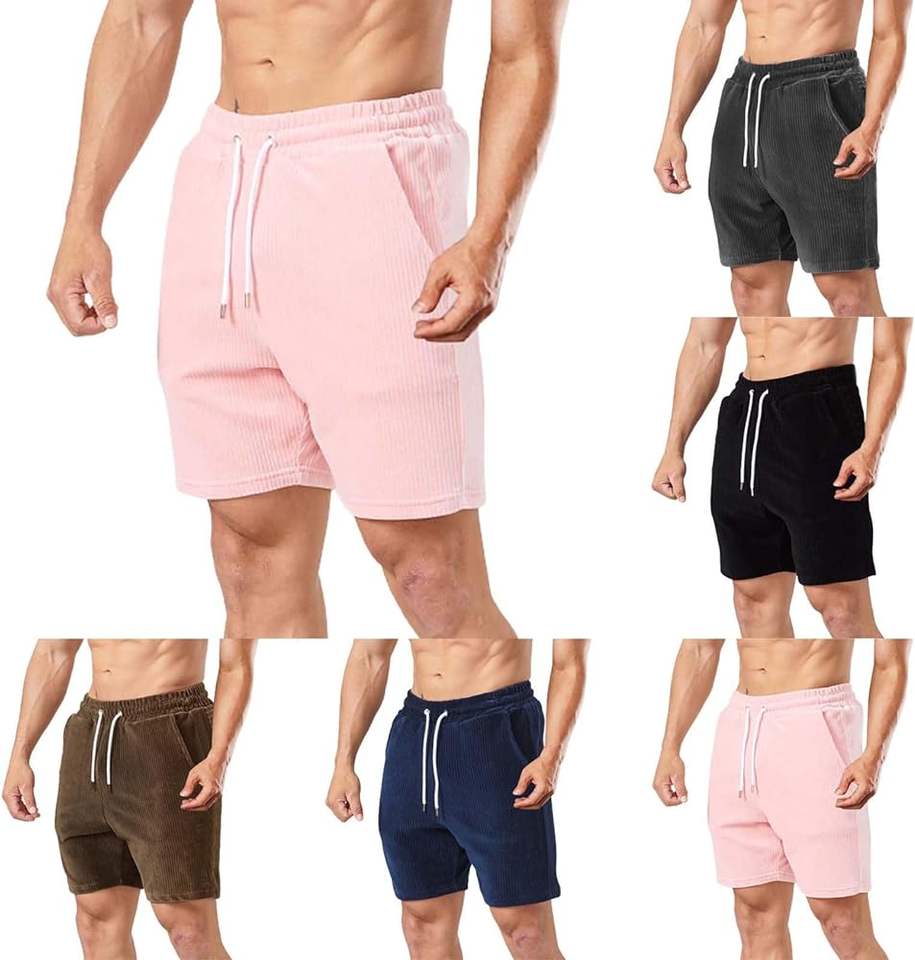 กางเกงขาสั้นผ้าลูกฟูกของผู้ชายกางเกงครึ่งบางเอวยางยืดออกกำลังกายยิมแฟชั่นลำลองแบบแข็งขายดีใหม่2024