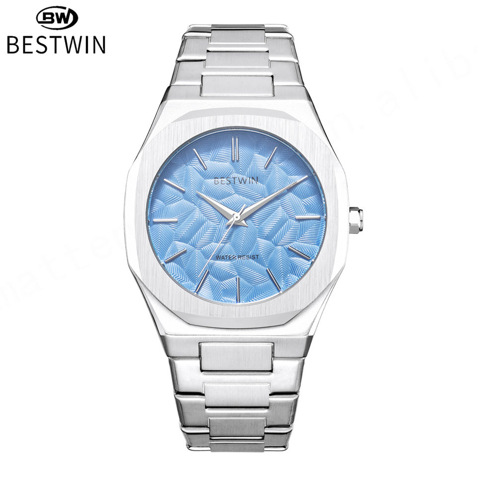 นาฬิกาข้อมือ9834สำหรับผู้ชายยอดนิยม2024ใหม่แบรนด์หรูนาฬิกาข้อมือสแตนเลสสตีลโครโนกราฟสีทองสำหรับผู้ชาย