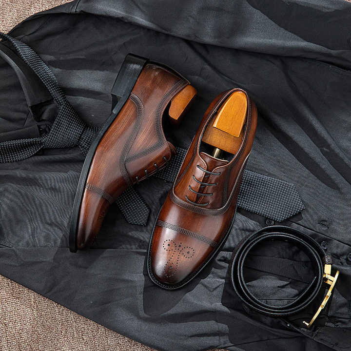 รองเท้าหนังวัวแท้รุ่นใหม่ปี 2025 ระบายอากาศได้ดี สไตล์โมคาซิน สำหรับผู้ชาย เหมาะสำหรับใส่ทำงานและวันทำงานทั่วไป รองเท้าทรงแบนเพิ่มความสูง รองเท้าสำหรับฤดูใบไม้ร่วง