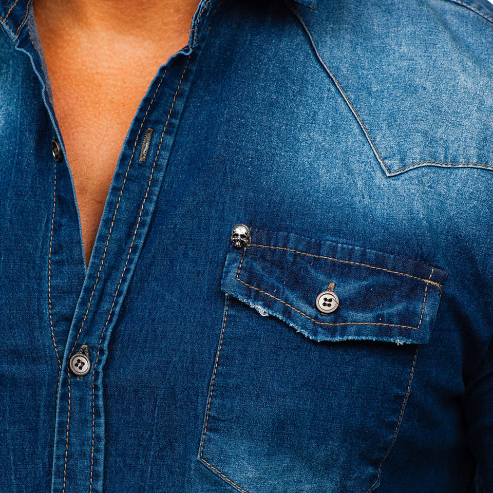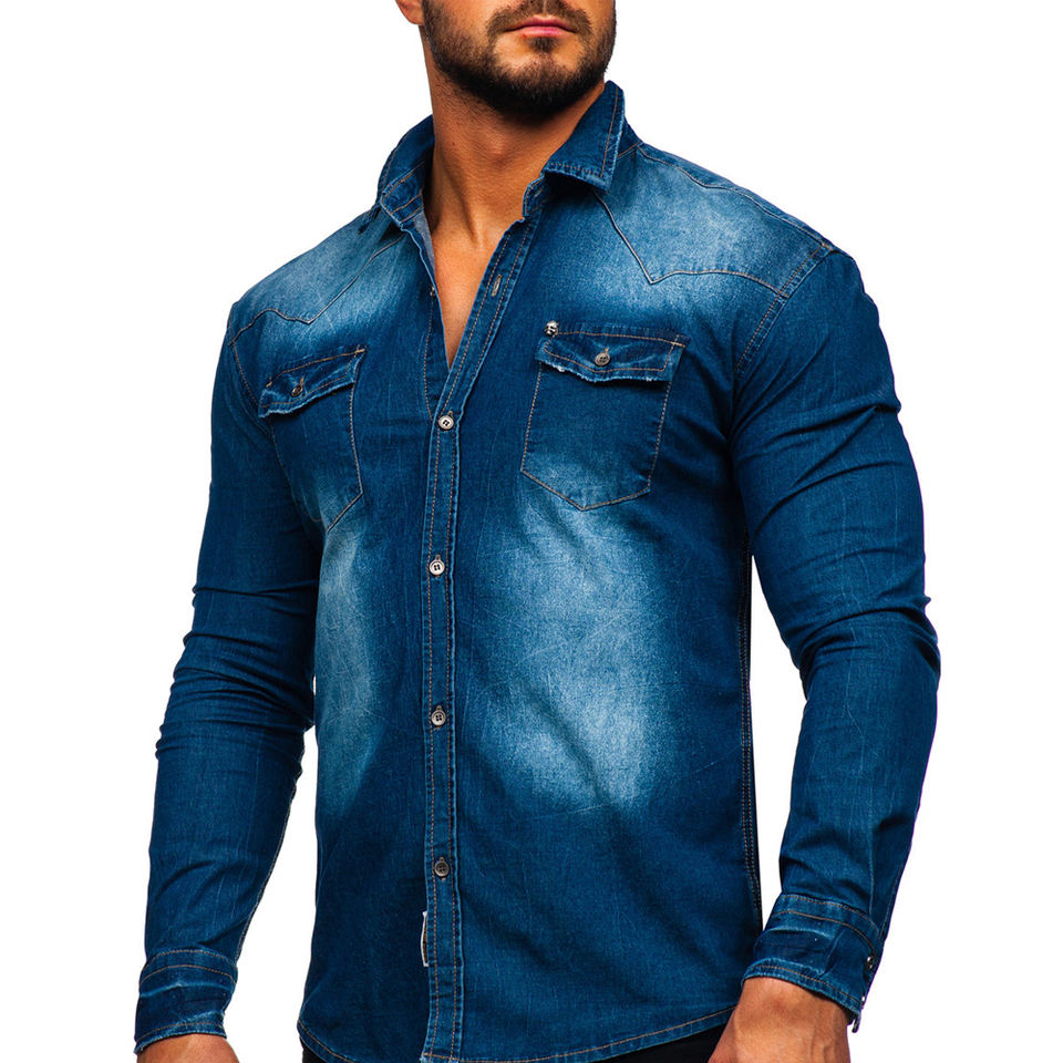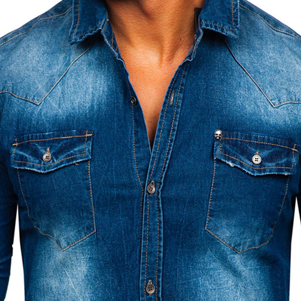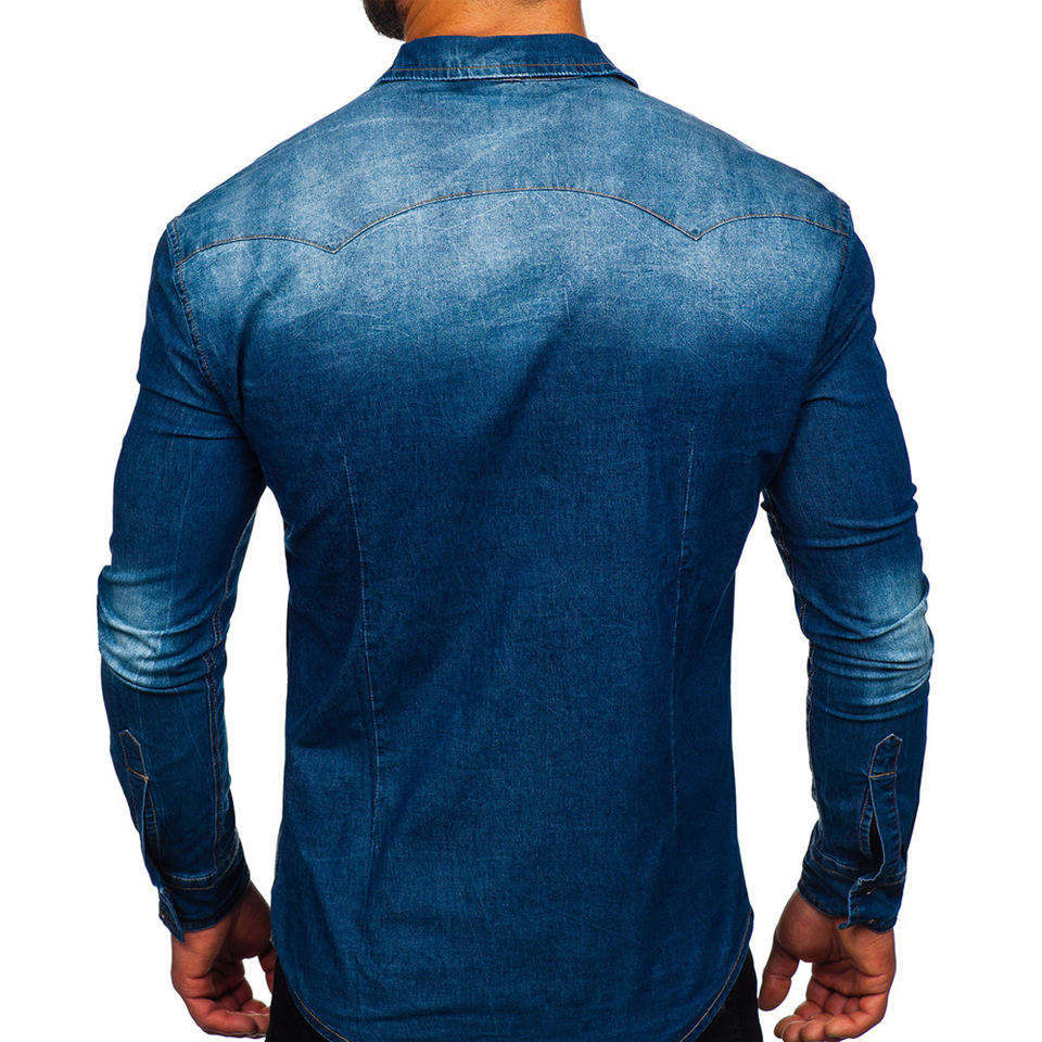 เสื้อเชิ้ตยีนส์ผู้ชายทรงสลิมฟิต ดีไซน์ใหม่ปี 2025 ลุคสบายๆ ซักแบบวินเทจ แขนยาว ไซส์ใหญ่พิเศษ