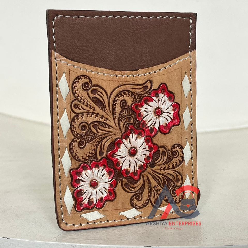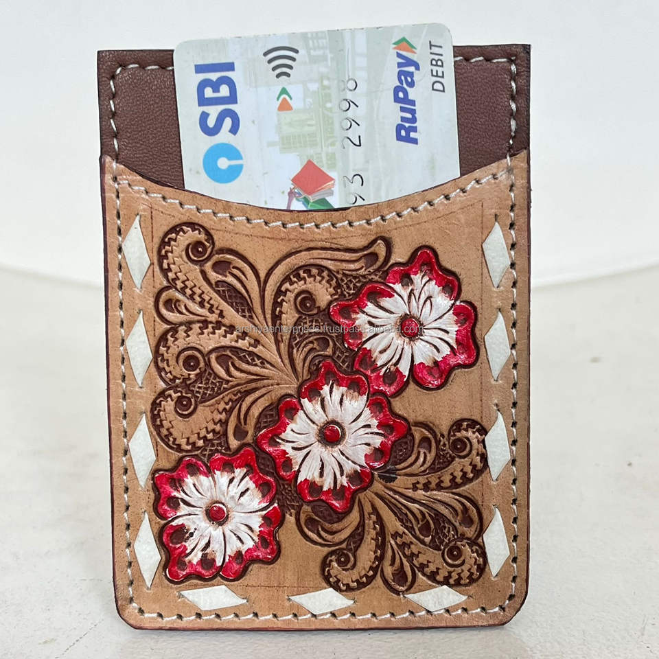 Type:Hand Tooled Cow Leather Credit Card Holder Wallet