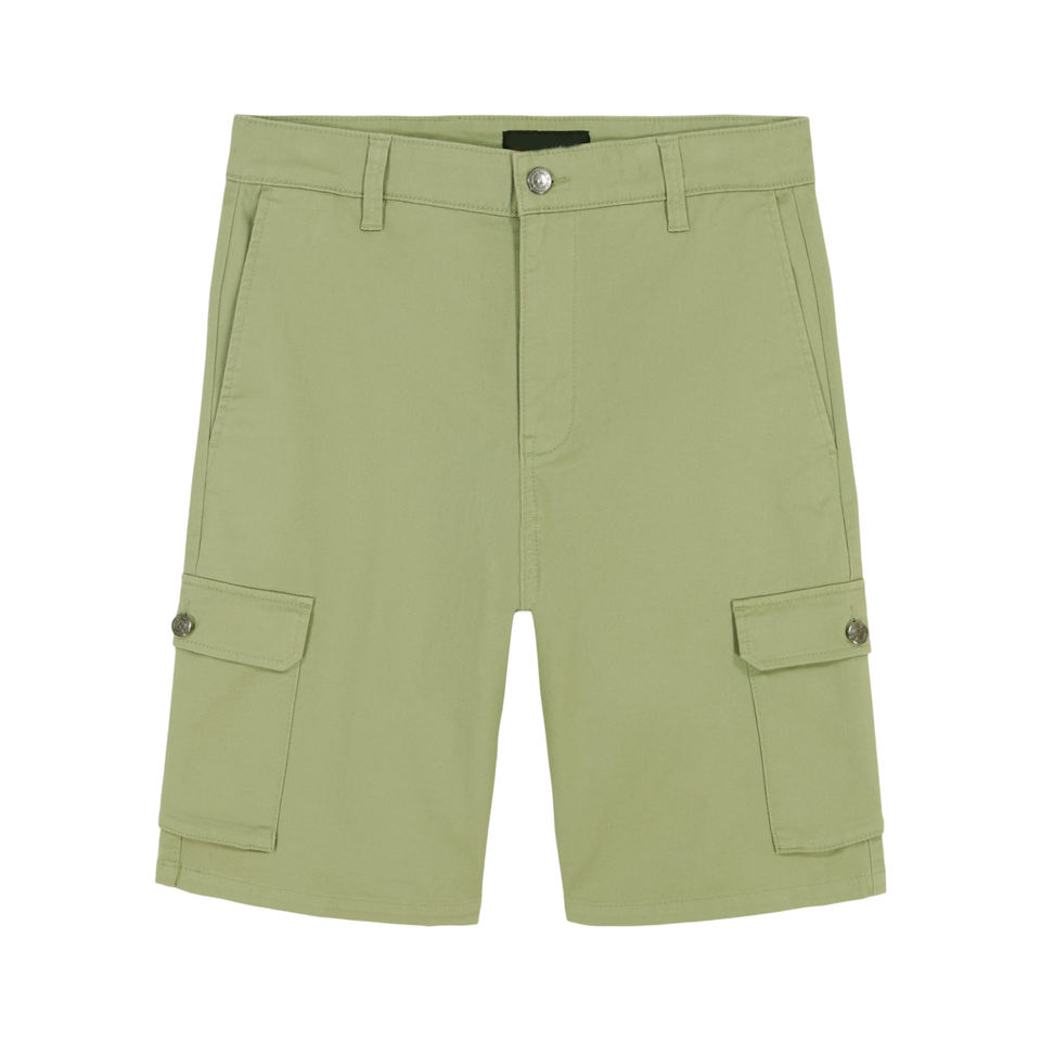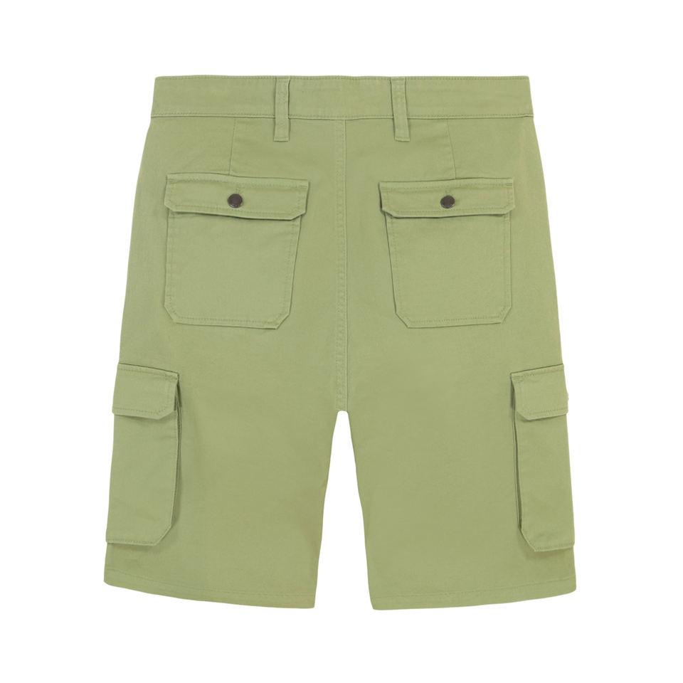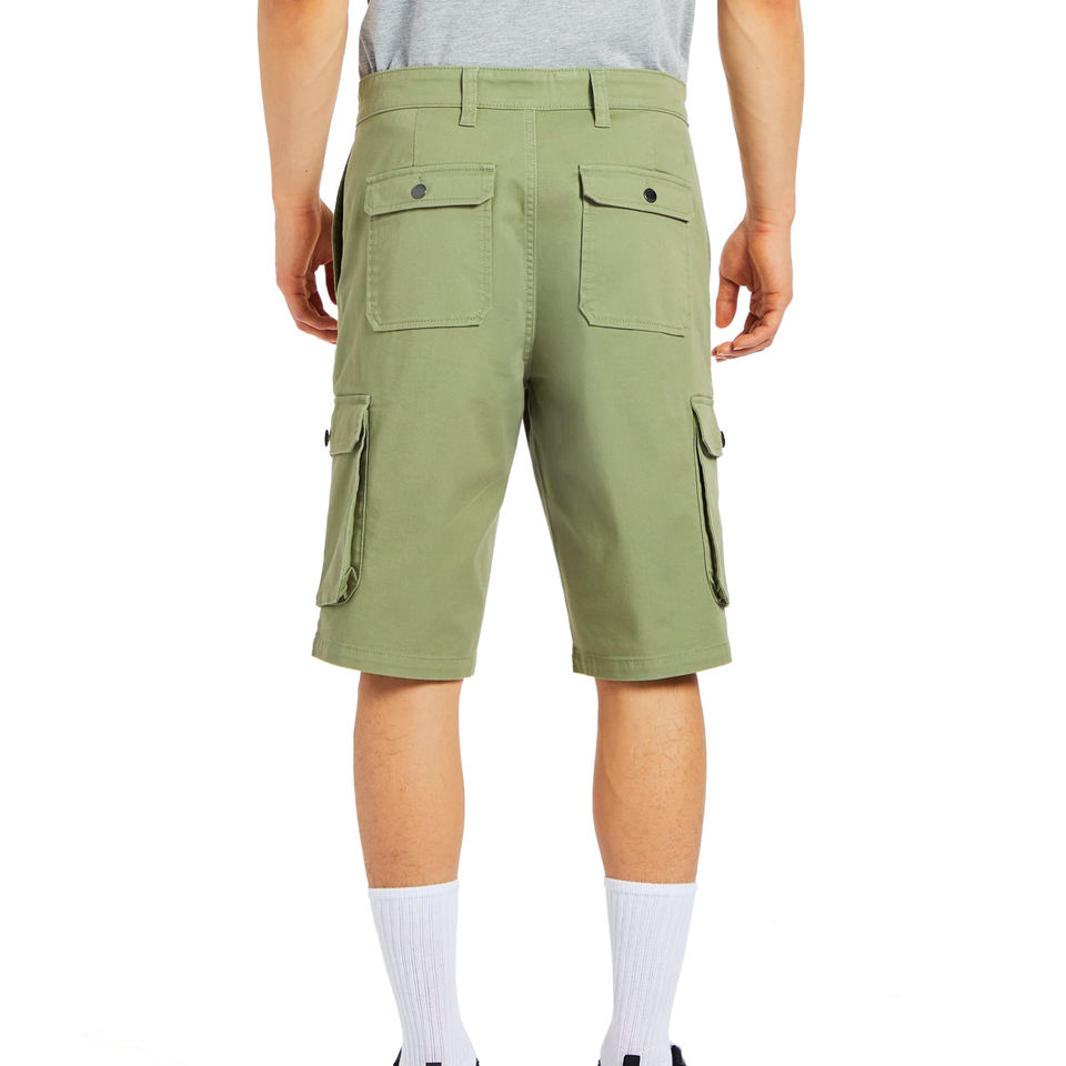 กางเกงขาสั้นผู้ชายแบบหลายกระเป๋า100% กางเกงยีนส์ขาสั้นทรงหลวมสีเขียวมะกอกชุดใส่กลางแจ้งทันสมัย2025ใหม่